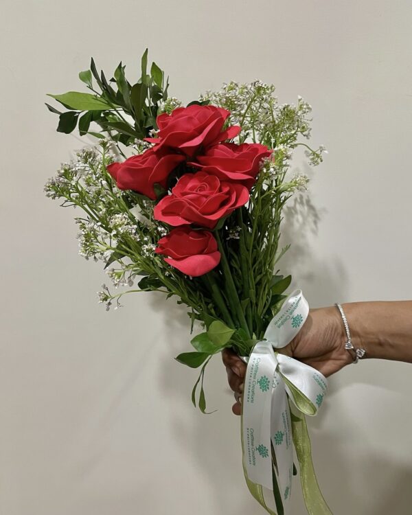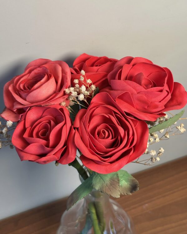 Beautifully handcrafted from premium foamiran, this bunch of red roses offers lasting beauty and vibrant charm. Perfect for brightening up your home or gifting to loved ones, these blooms require minimal care yet radiate the same warmth and natural elegance as real flowers. Sold as an individual stem or in sets of 3 or 5.